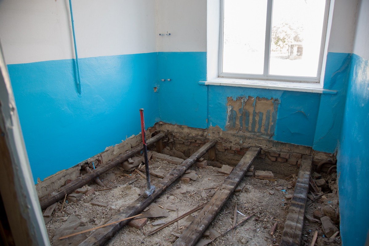«У нас реорганизация, будет школа-детский сад, под него выделили левое крыло. Сейчас там идёт полная реконструкция, пространство переделывается под группы детсада: снимаются полы, стены перестраиваются, полностью заменили систему отопления, будут менять котельную и т.д. Это делается, потому что здание садика в очень ненадёжном состоянии, рушится, поэтому решили соединить оба заведения, чтобы детям было хорошо», – рассказала директор средней школы с. Владимировка Елена Иванченко.