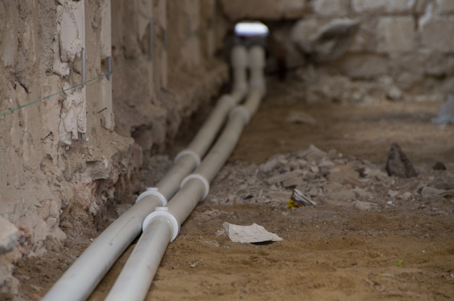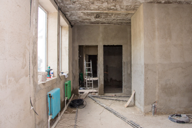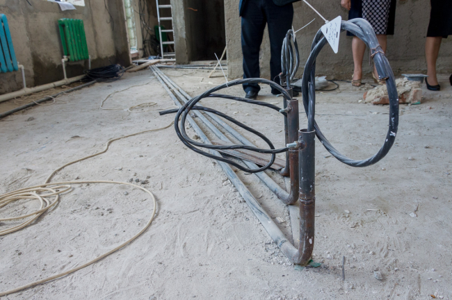 Впрочем, одной только перестройкой левого крыла работы здесь не ограничиваются. Звук инструментов слышен и в столовой, где будет новый пищеблок, и в коридорах, и в котельной.