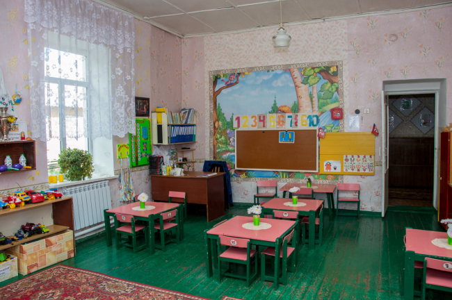 Детский сад с. Владимировка тоже располагается в старом, точнее очень старом здании. Построенное в 1930-х годах, с саманными стенами и ветхой крышей, оно каждый день являет персоналу и детям новые трещины на стенах и потолках. Здание аварийное, а потому ещё весной решили перенести детсад в сельскую школу. Она рассчитана на 500 человек, но сейчас обучаются только 150. Так что ещё полусотне детсадовцев будет, где разместиться. Им отдадут целое крыло.