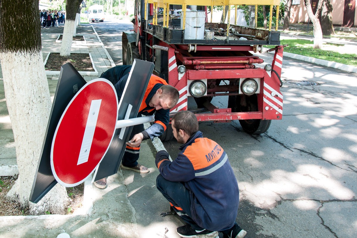 15 Май, 2017, 12:43Тирасполь, 15 мая. /Новости Приднестровья/. В столице идёт работа по обновлению дорожных знаков. Так на улице Карла Маркса устанавливают новые светоотражающие знаки «Уступи дорогу», «Выезд на одностороннее движение», «Остановка запрещена». Одновременно некоторые знаки убирают, а некоторые — устанавливают. Как рассказал директор ТДРСУ Геннадий Горох, по указанию главы города, специальная комиссия с участием представителей предприятия, госадминистрации и ГАИ объехала город, чтобы оценить правомерность установки тех или иных знаков.