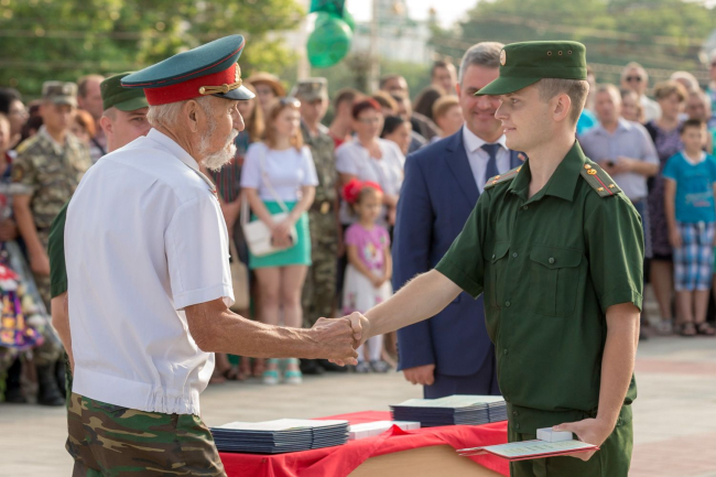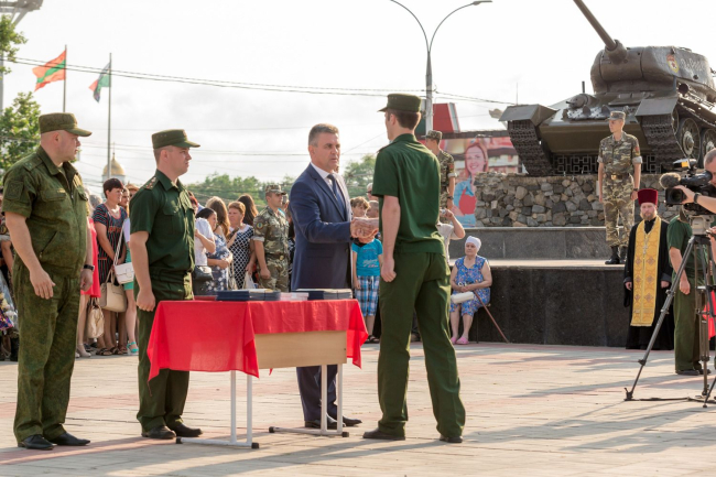 «Мы должны сделать все, и вы в том числе, чтобы приднестровцы, приходя в армию, хотели служить в ней. Для этого введен рабочий день для солдат срочной службы, и всем студентам разрешено продолжить обучение на заочной форме, находясь в Вооруженных силах, на бюджетной основе. Также пересматриваются формы питания, форменное обмундирование, боевая работа, спорт», — пояснил Вадим Красносельский. В завершение своего выступления он пожелал выпускникам идти по своей стезе смело и открыто.