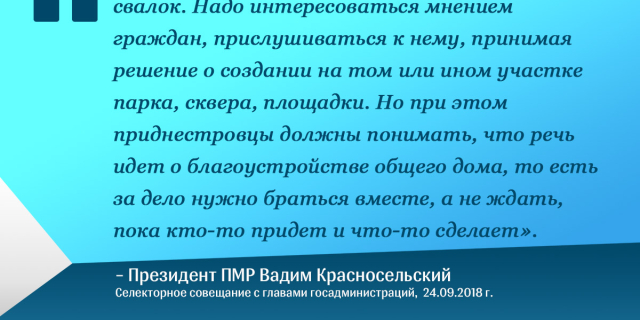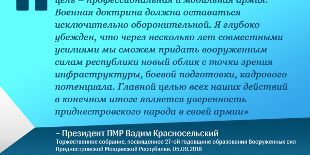 Надо работать так, чтобы каждый приднестровец был уверен в завтрашнем дне 26 Дек., 2018, 10:42 Цитаты Президент