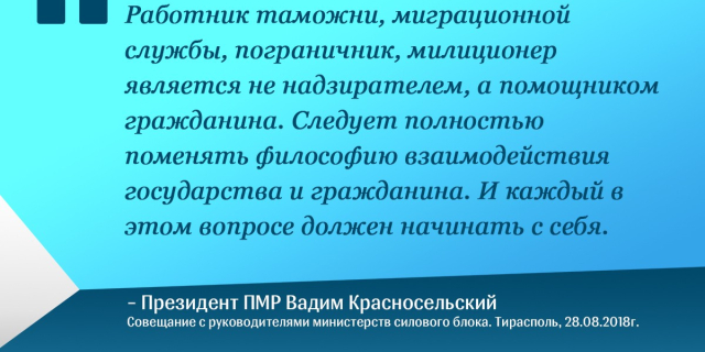 Президент ПМР Вадим Красносельский о представителях силовых структур республики 28 Авг., 2018, 18:34 Цитаты Цитата