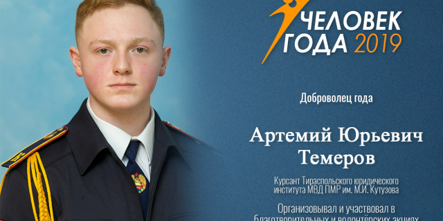 Артемий Темеров победил в номинации «Доброволец года» Курсант Тираспольского юридического института принимал активное участие в благотворительных и волонтёрских акциях 19 Фев., 2020, 16:32 Общество Человек года