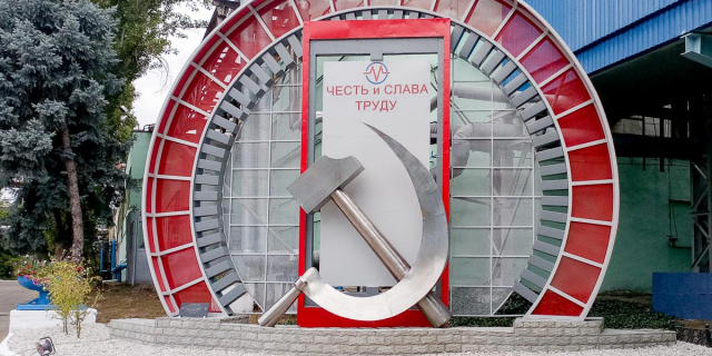 Арт-объект объединил в себе изображение статора - одного из основных частей электродвигателей и генераторов, а также символа труда