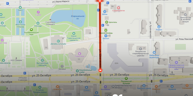 В Тирасполе часть улицы Шевченко перекроют 21 июля Ограничение коснётся участка дороги от ул. Р. Люксембург до ул. К. Либкнехта 20 Июл., 2021, 17:14 Общество перекрытие движения Тирасполь
