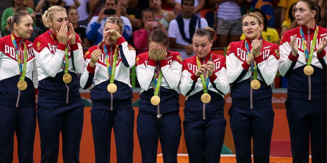 Золото завоевали гимнастка Маргарита Мамун в многоборье, женская сборная по гандболу, борец вольного стиля Абдулрашид Садулаев в весовой категории до 86 кг и Александр Лесун в современном пятиборье