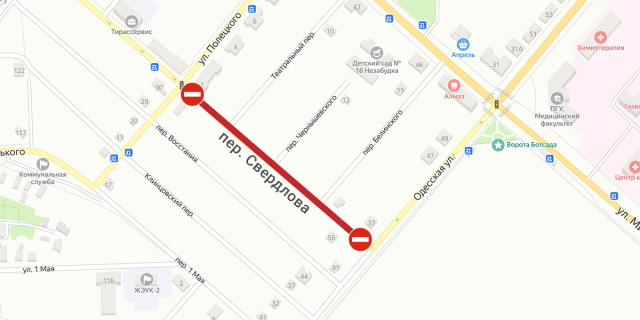 В Тирасполе с 5 августа переулок Труда закрыт для проезда Кроме того, перекрытие переулка Чкалова продлено до 1 сентября 05 Авг., 2020, 12:44 Общество перекрытие движения