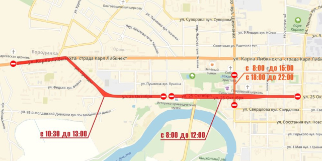 30 апреля и 1 мая в центре Тирасполя перекроют движение автотранспорта