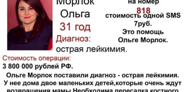 Благотворительный фонд «Гуманность и справедливость» осуществляет сбор денежных средств для оказания помощи Ольге Морлок