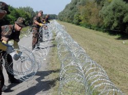 Заграждения из колючей проволоки протяженностью в 41 километр предназначены для того, чтобы сдерживать поток мигрантов. Ранее Венгрия установила заграждения на границе с Сербией