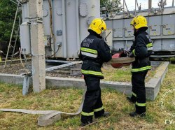 Отрабатывались навыки тушения возгорания на объекте, находящемся под высоким напряжением
