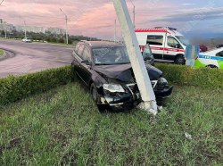 Водитель «Фольксвагена» съехал с мокрой дороги и врезался в столб