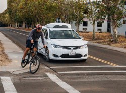 Машина самостоятельно двигается по улицам города, выбирает маршрут и останавливается, чтобы пропустить пешехода