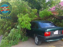 В Дубоссарах большая ветка дерева упала на припаркованный автомобиль