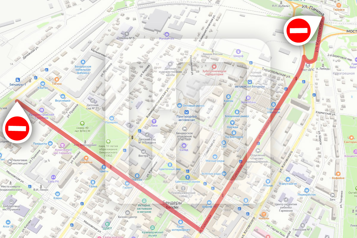 В связи с этим с 10:00 будет перекрыто движение транспорта от площади перед ж/д вокзалом «Бендеры-1» по маршруту: ул. Суворова – ул. Тираспольская – ул. Котовского – парк А. Невского.