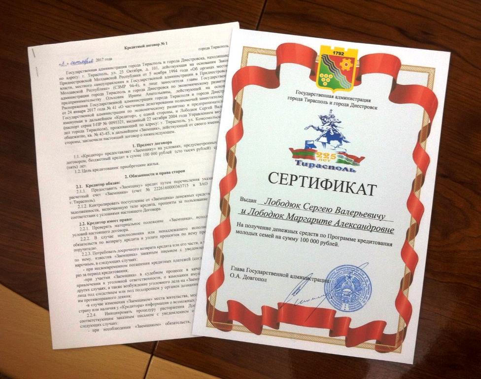10 молодых семей из Тирасполя получили сертификаты на выдачу льготных кредитов
