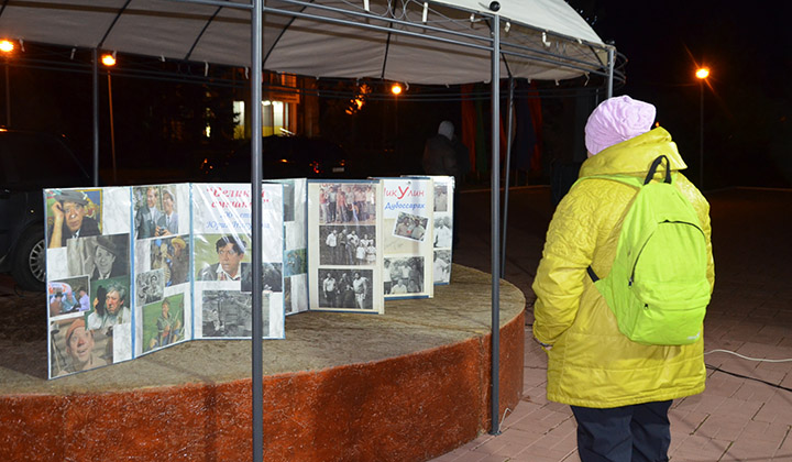 На площади установили и стенды с кадрами из фильмов, в которых снимался Юрий Никулин, а из динамиков звучали известные песни из советского кино.