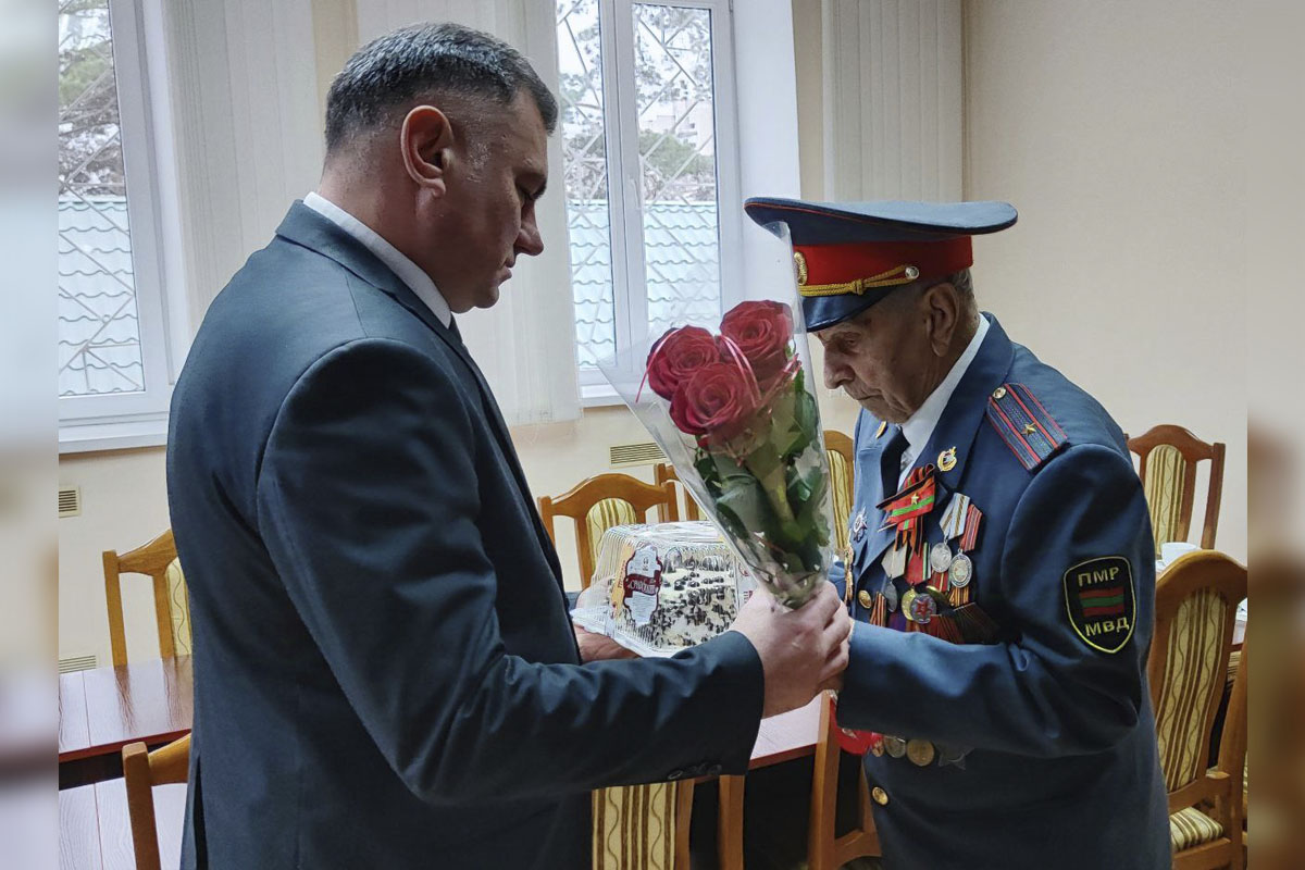 Сегодня рыбничанин принимал поздравления в кабинете начальника рыбницкого ОВД. С днём рождения и Днём милиции ветерана Великой Отечественной войны поздравил глава города Виктор Тягай. Он пожелал фронтовику здоровья и долгих лет жизни.