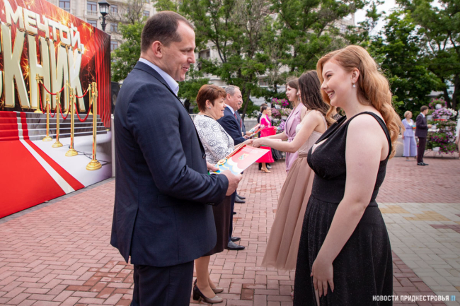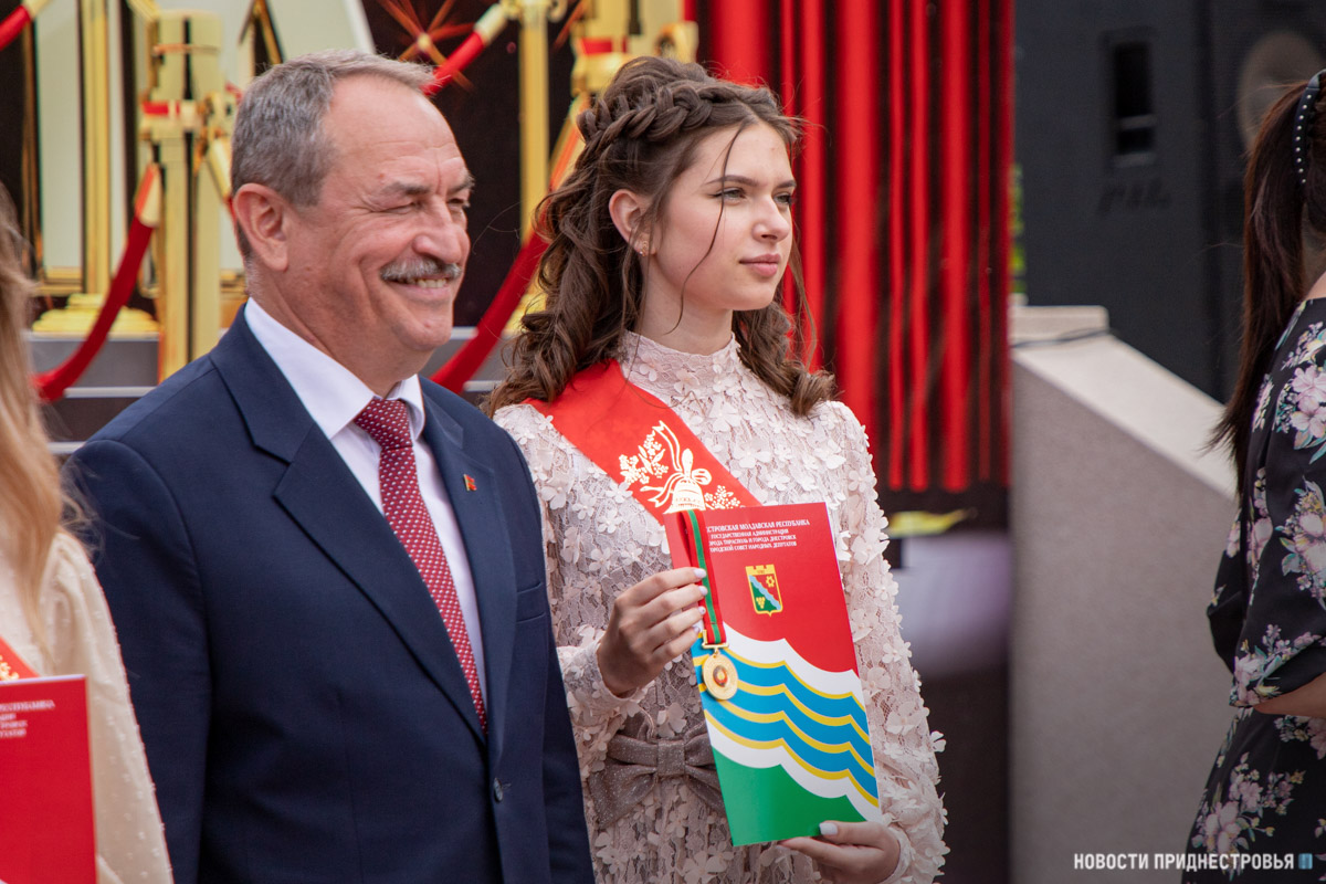 На церемонии 82 тираспольских школьника получили золотые медали, 31 – серебряные. К ним ещё добавились один серебряный медалист из Тираспольского Суворовского военного училища и четыре золотых из Республиканского молдавского теоретического лицея.