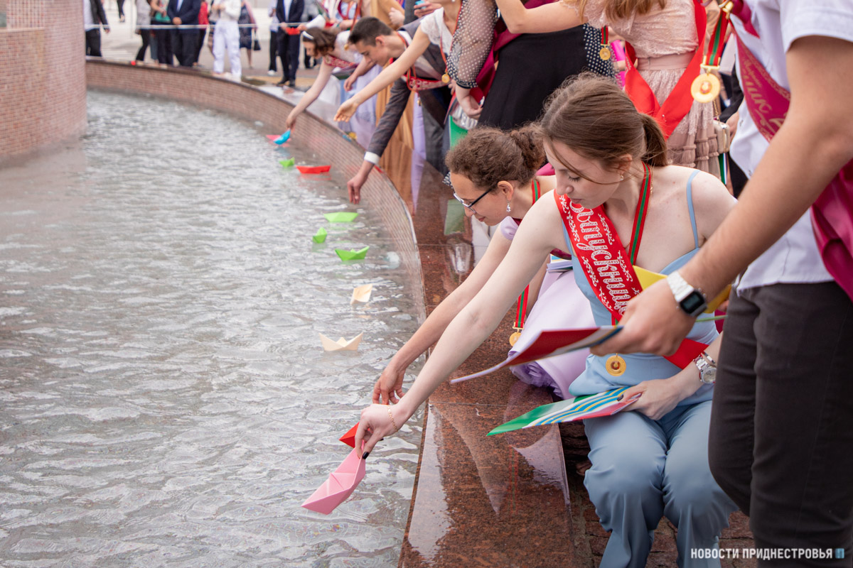 В завершение торжественной церемонии выпускники спустили на воду бумажные кораблики, символизирующие выход в открытое море взрослой жизни.