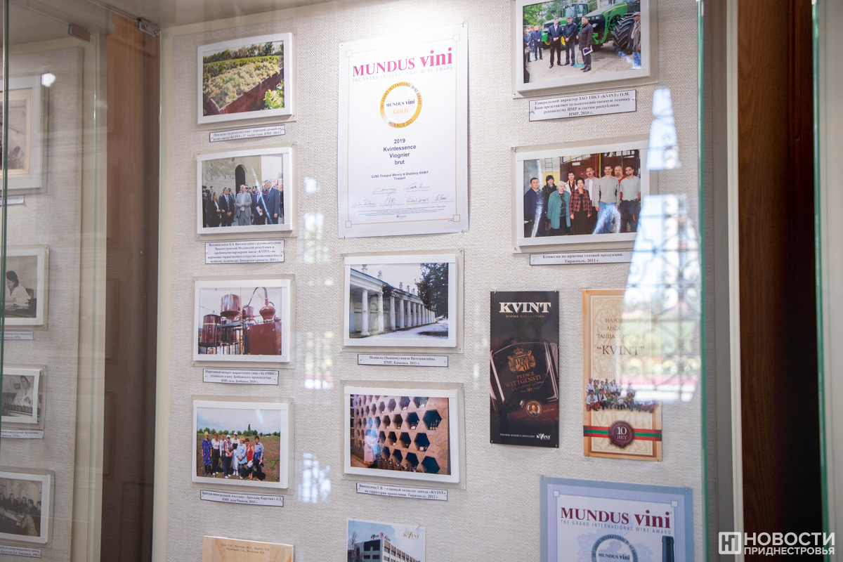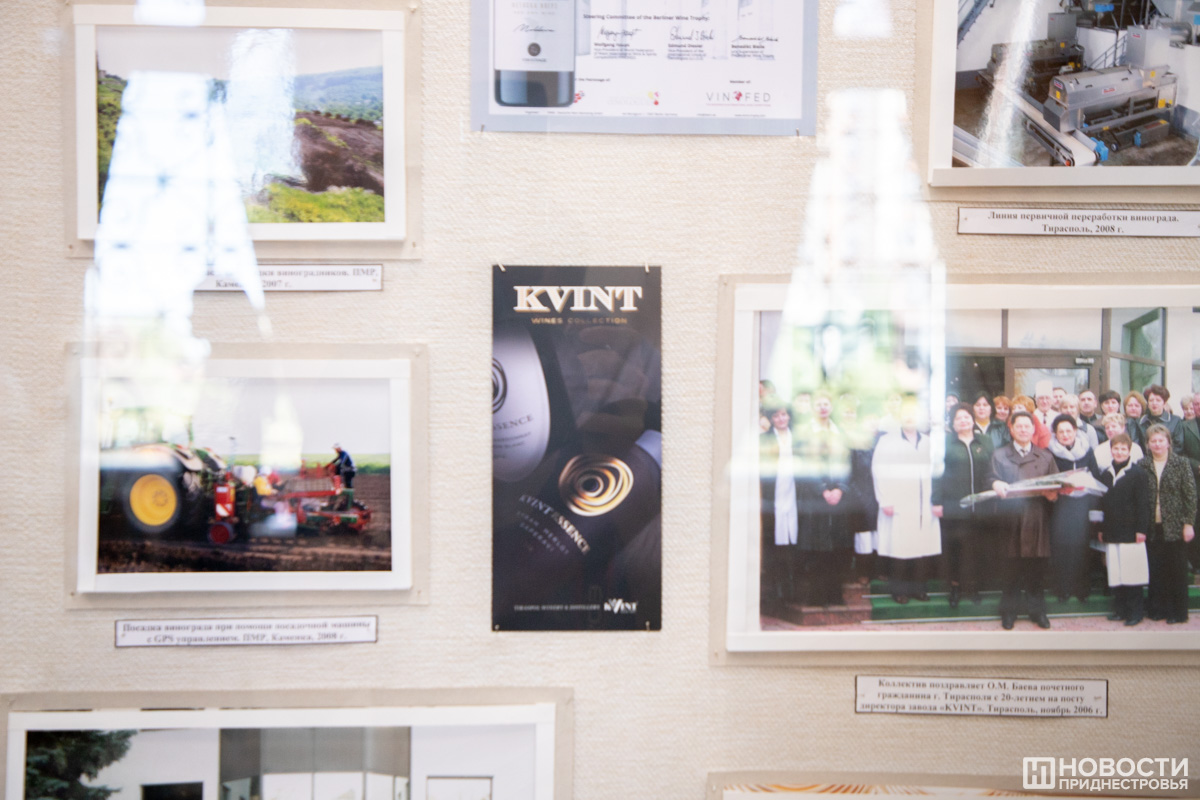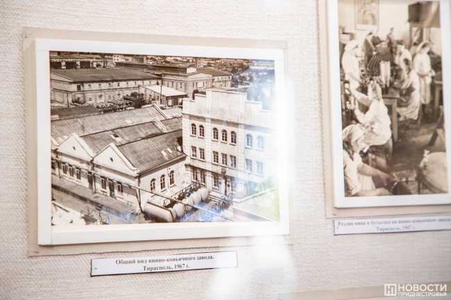 Кроме продукции предприятия, на выставочных стендах были представлены и фотодокументы, повествующие о его истории. 125 лет тому назад всё начиналось с того, что в Тирасполе был организован цех № 9 по переработке в крепкие напитки приобретённого у населения виноматериала. Самый старый снимок датируется 1932 годом, на нём запечатлены сельчане, привезшие на подводах сырьё для сдачи его на тираспольский завод, входивший в картель винопроизводителей МАССР «Молдвинтрест».