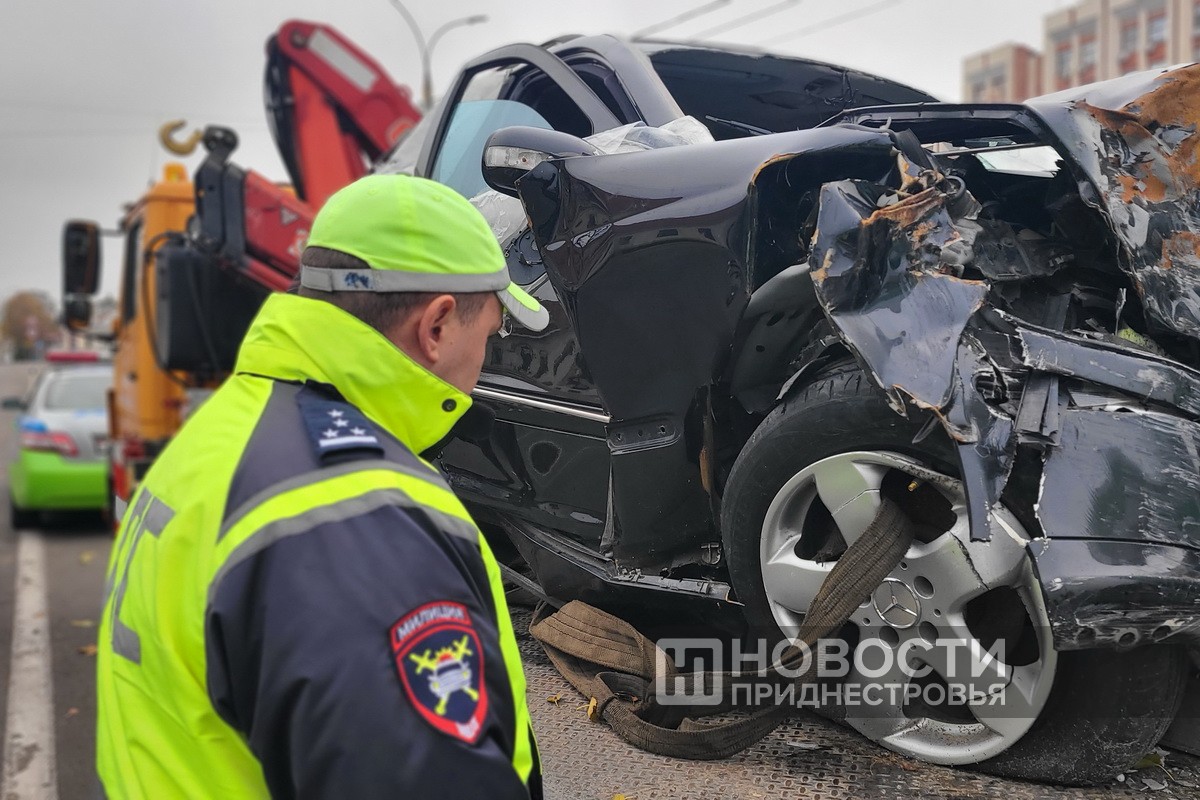 Конкретно этот «Мерседес» стал таким по вине пьяного водителя. Авария случилась в Тирасполе в августе: водитель не только был нетрезв, но и говорил по телефону во время движения. Несмотря на то, что сама машина оказалась всмятку, её владелец остался жив.