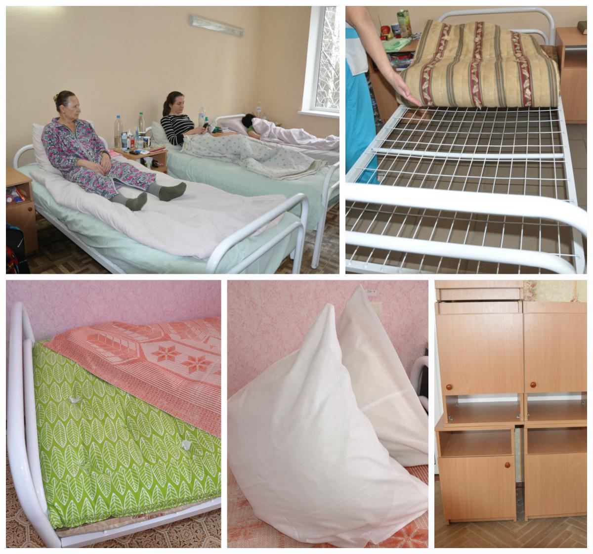 Для пациентов созданы комфортные условия. Новые кровати шире по сравнению с прежними, у них качественный и прочный каркас, что крайне необходимо для людей, которые проходят стационарное лечение. Внешний вид старых матрасов тоже оставлял желать лучшего, их заменили на новые - красивые и удобные. Также в скором времени госпиталь получит 230 табуретов. В целом обновление по отделениям составило более 50%.