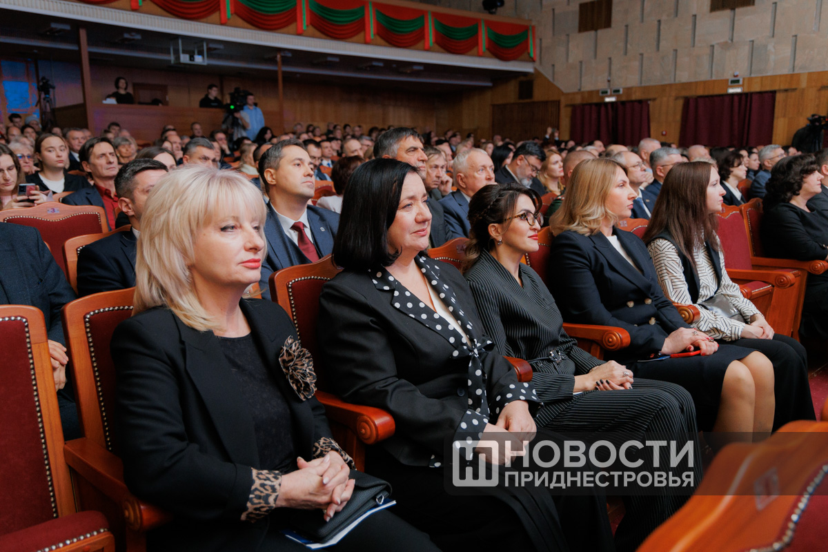 На церемонии присутствовали глава Правительства Александр Розенберг, председатель Верховного Совета Татьяна Залевская, первый Президент ПМР Игорь Смирнов, руководители министерств и ведомств.