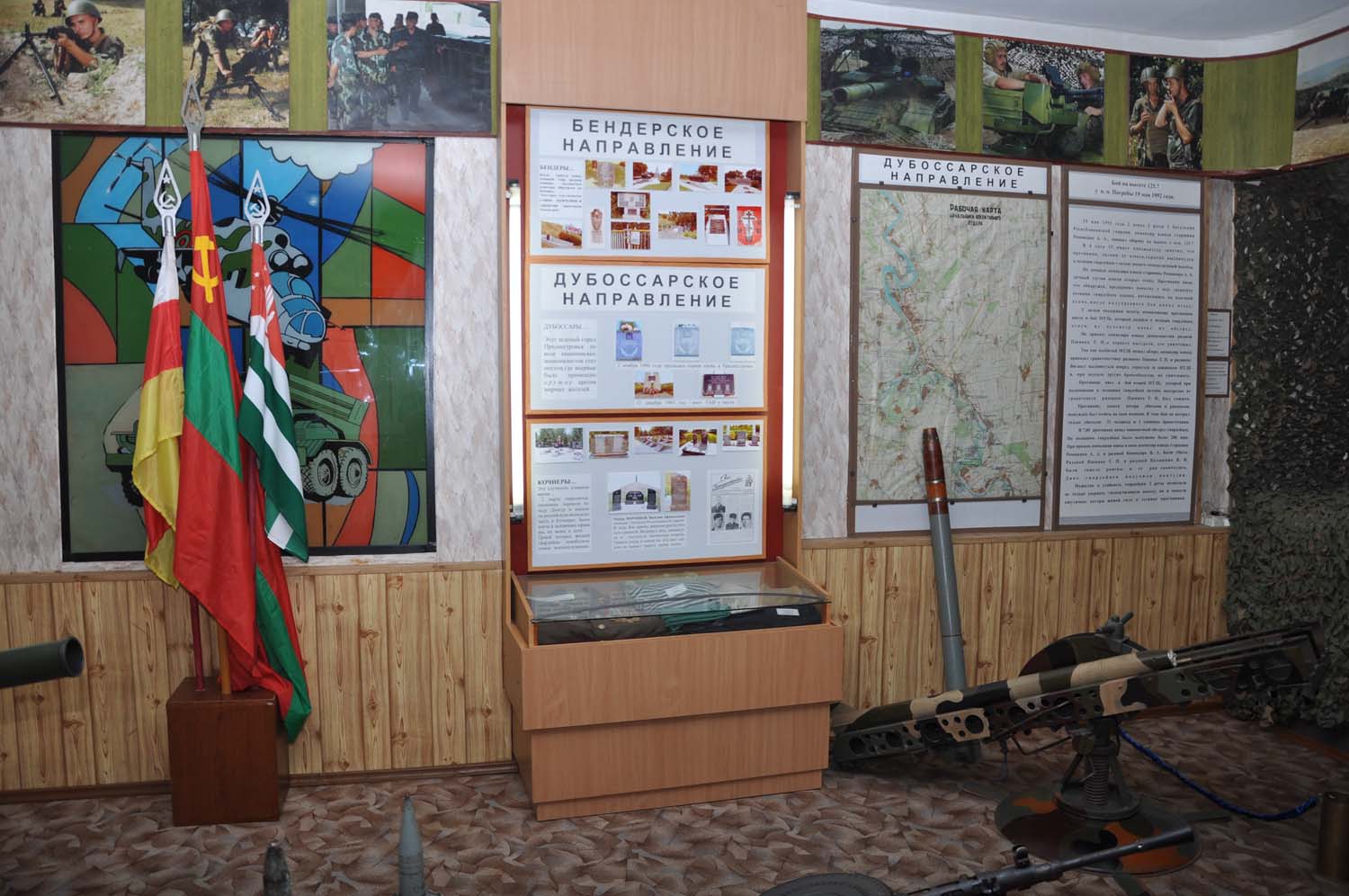 Также экспонируются две диорамы: лентообразные, изогнутые полукругом живописные картины с передним предметным планом. Одна из них – «Штурм Бендерского моста», отражающая трагические события 20 июня 1992 года. Вторая рассказывает о военных действиях в районе Дубоссар.