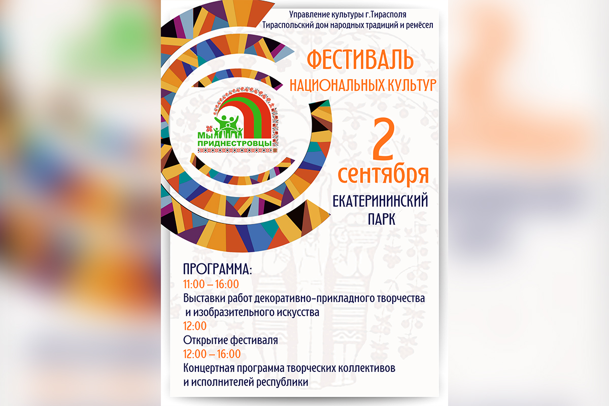 Тирасполь, 27 августа. /Новости Приднестровья/. 2 сентября с 11:00 в Екатерининском парке Тирасполя развернётся Фестиваль национальных культур «Мы – приднестровцы».