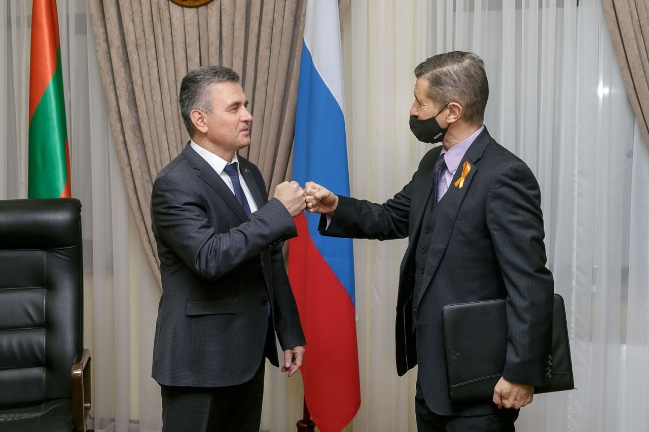 Приветствие по-карантиновски. Встреча Президента ПМР Вадима Красносельского и посла Великобритании в Молдове Стивена Фишера. Тирасполь, 2 декабря. Фото: пресс-служба Президента ПМР