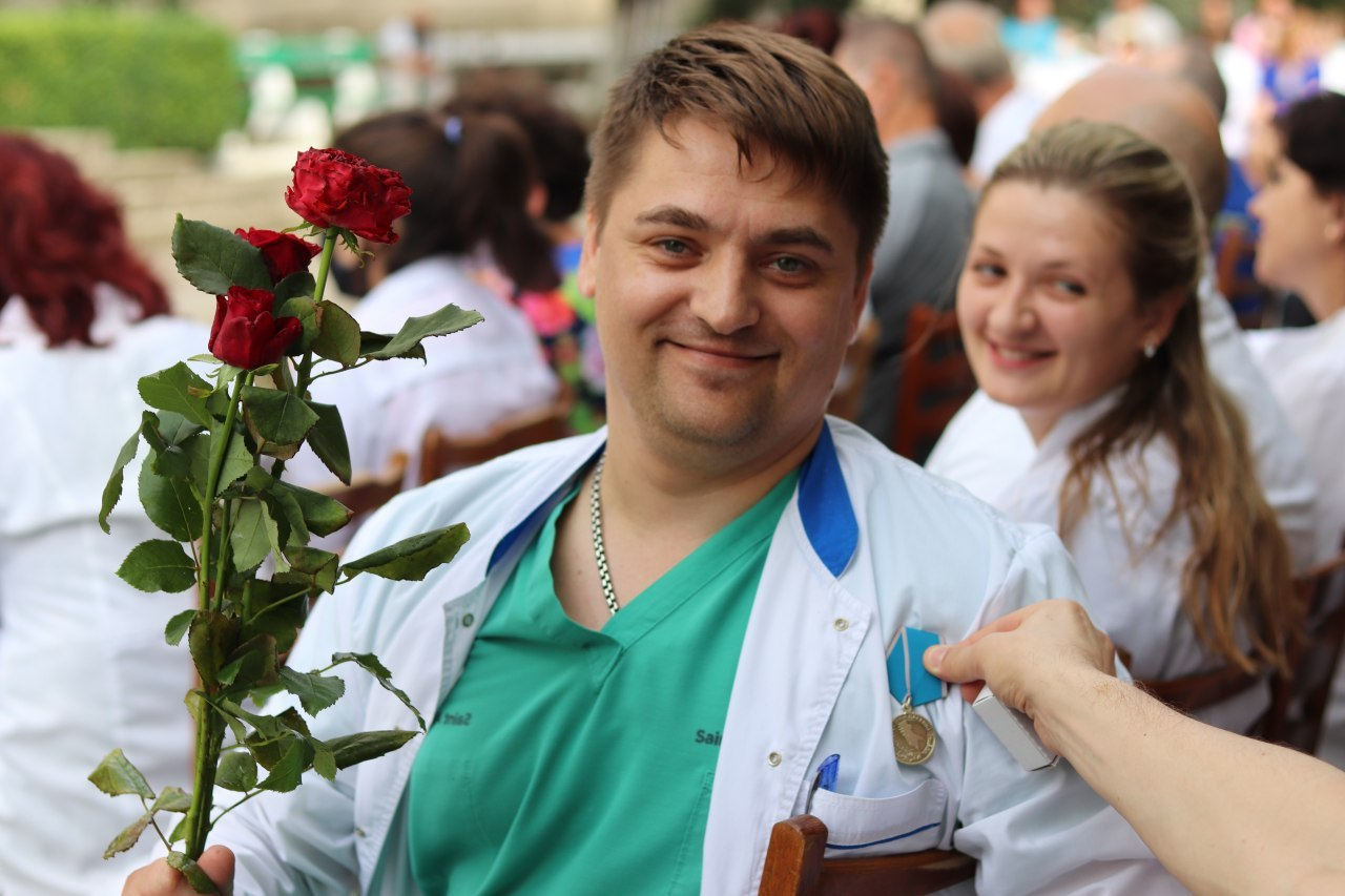 Награждение медалистов у фонтанного комплекса в Тирасполе, 18 июня