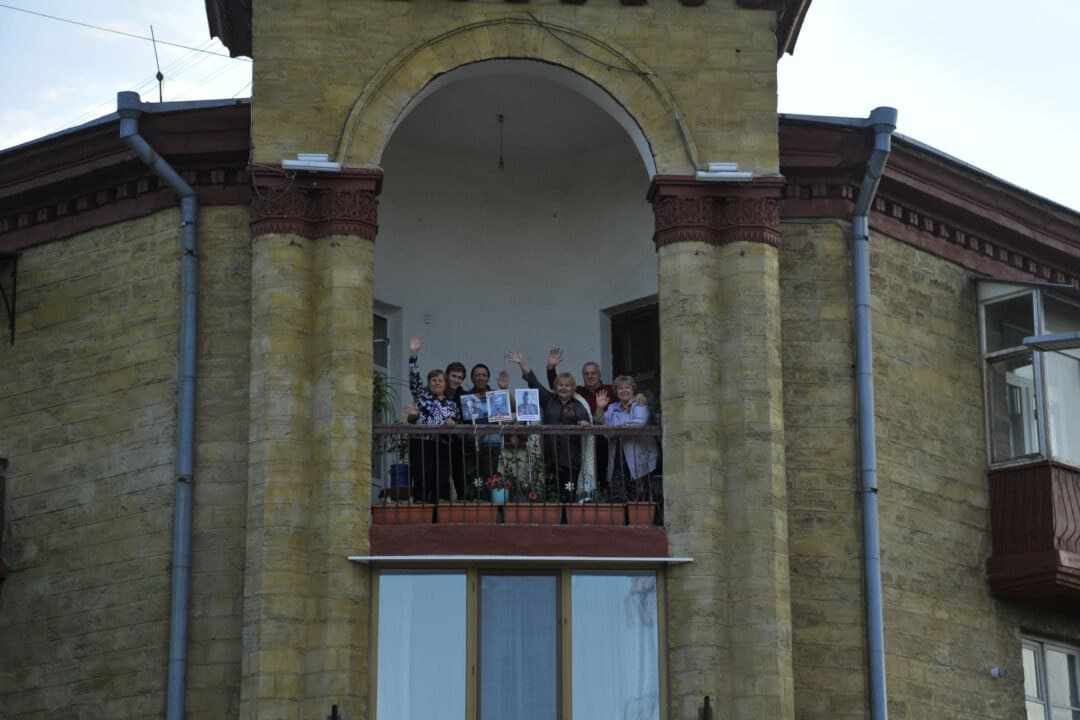 Ежегодная акция "Бессмертный полк" прошла в новом формате. Люди выходили с фотографиями родственников на балконы. Тирасполь, 9 мая. Фото: Минобороны ПМР