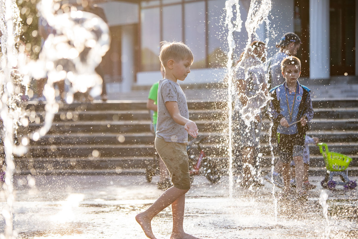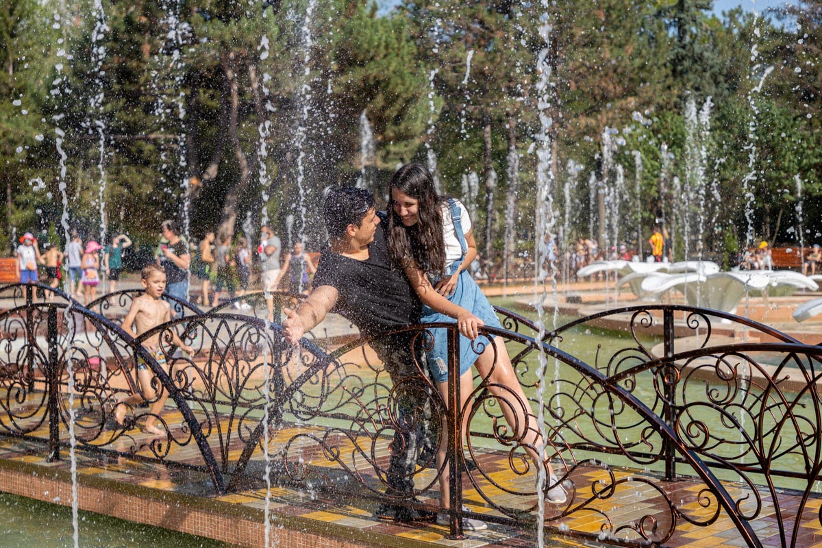 Смягчение карантина - дети вышли к фонтану. Тирасполь, 6 июня