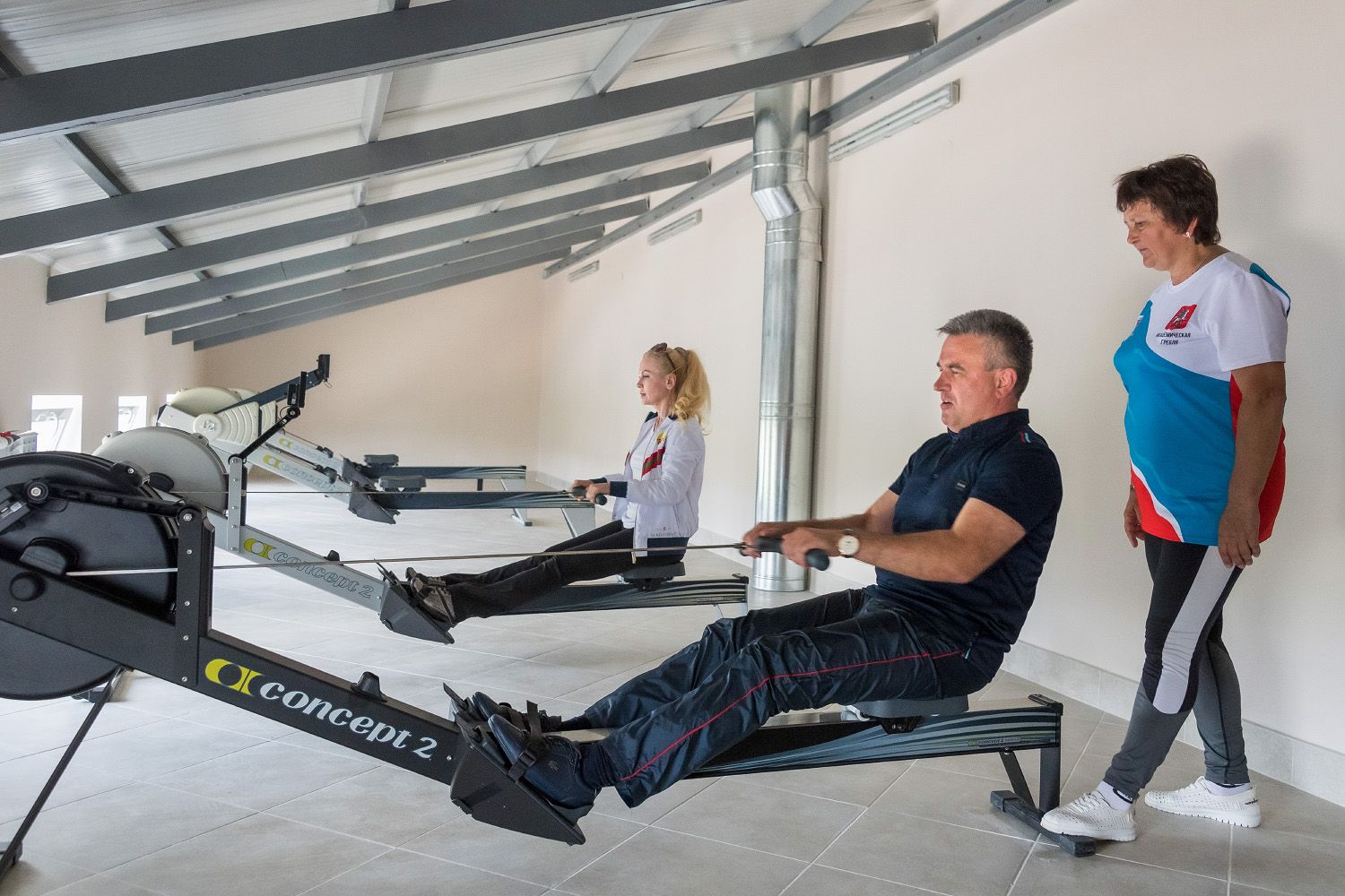 Президент ПМР Вадим Красносельский с супругой Светланой первыми испытали тренажеры для гребли. Открытие Центра гребного спорта в Бендерах, 18 июня. Фото: пресс-служба Президента ПМР