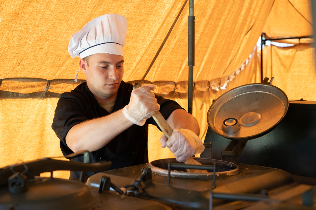 По традиции все желающие могли угоститься солдатской кашей и ароматным чаем.