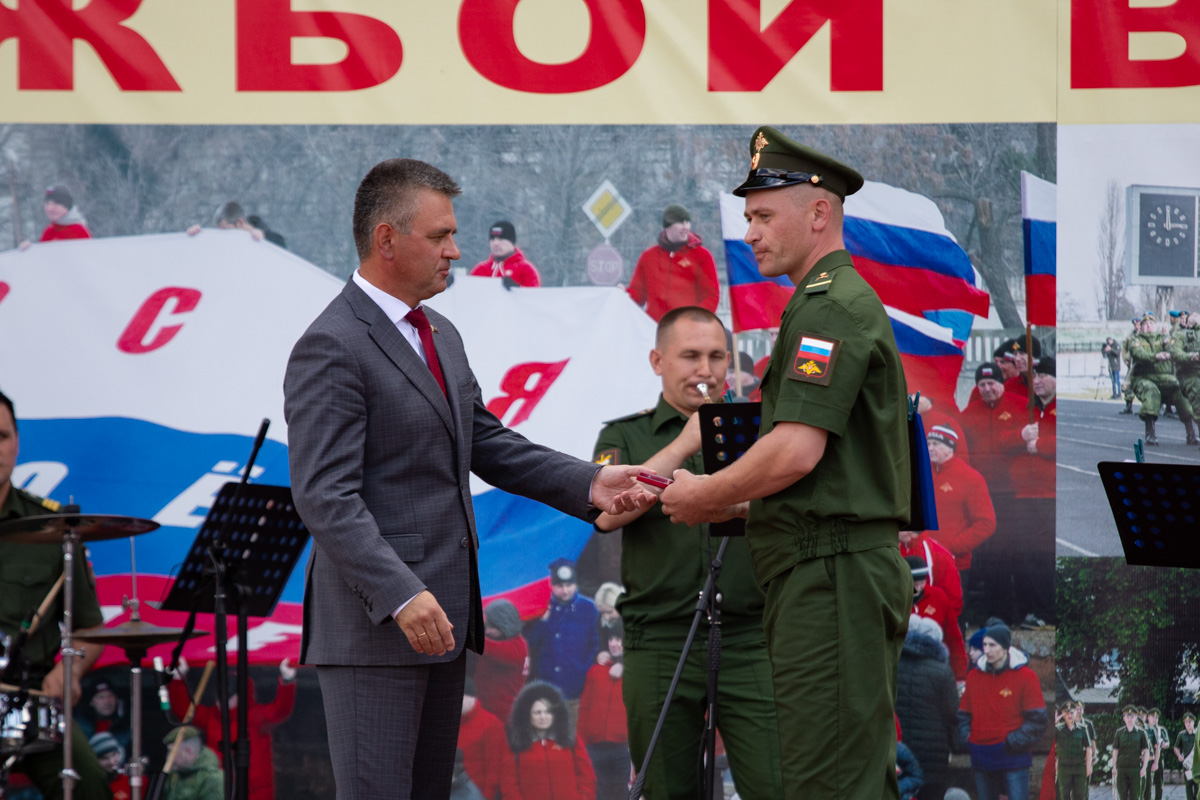 Президент Вадим Красносельский в своём выступлении напомнил, что история пребывания российского солдата на берегах Днестра уходит в далекие века и всегда была неразрывно связана с историей Тирасполя и всего Приднестровья: «Русский, советский и солдат современной России охраняет здесь мир и покой с конца XVIII века и до сегодняшних дней».