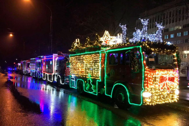Тирасполь, 28 декабря. /Новости Приднестровья/. 30 декабря новогодний караван ГУпЧС создаст праздничное настроение для жителей Тирасполя и Бендер. В светящихся пожарных и спасательных машинах Дед Мороз и Снегурочка привезут сладкие угощения для детей, сообщает пресс-центр МВД.