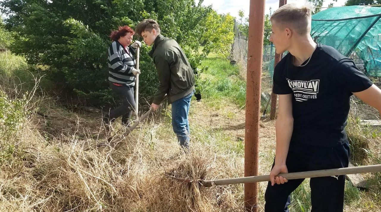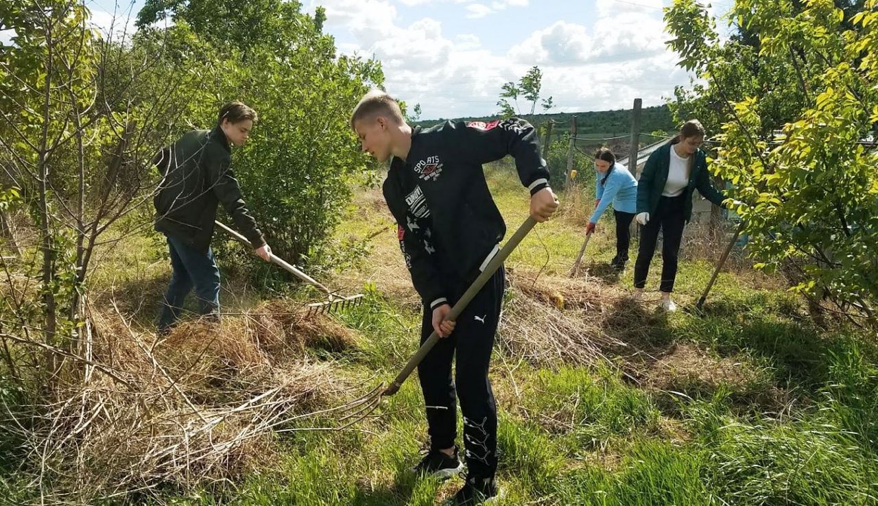 Старшеклассники очистили от сорняков и сухостоя дачный участок.