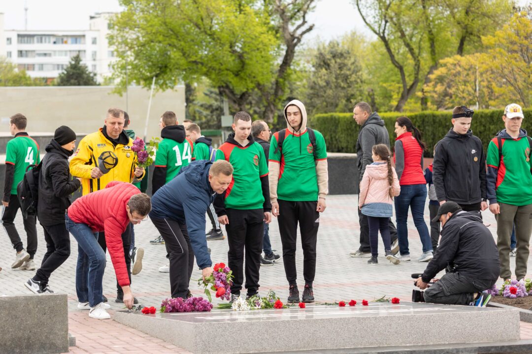 Первая остановка – Мемориал Славы. Здесь прошла минута молчания. Участники велопробега возложили цветы к монументам защитникам Отечества.