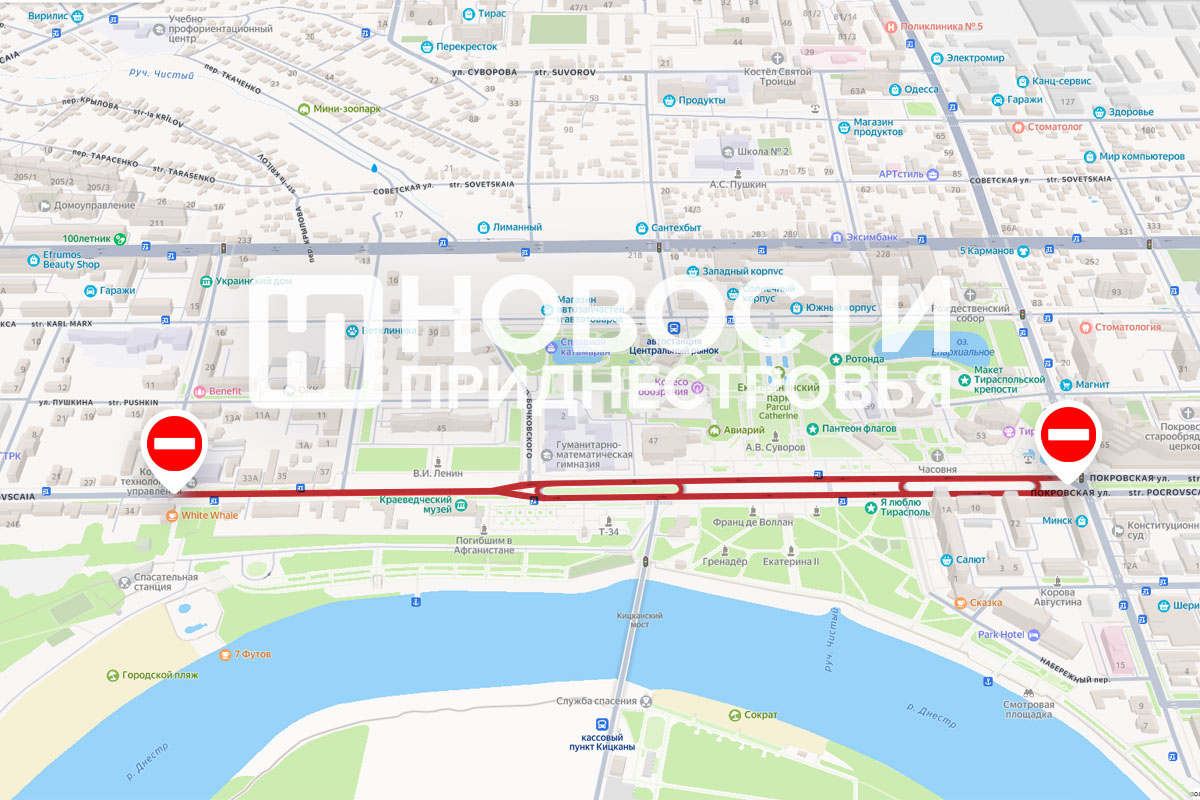 Также сообщается, что в связи с подготовкой и проведением праздничных мероприятий в Тирасполе с 19:00 1 сентября до 12:00 2 сентября будет перекрыто движение от ул. Луначарского до пер. Энгельса, а также по ул. Шевченко от ул. Свердлова до ул. К. Маркса.