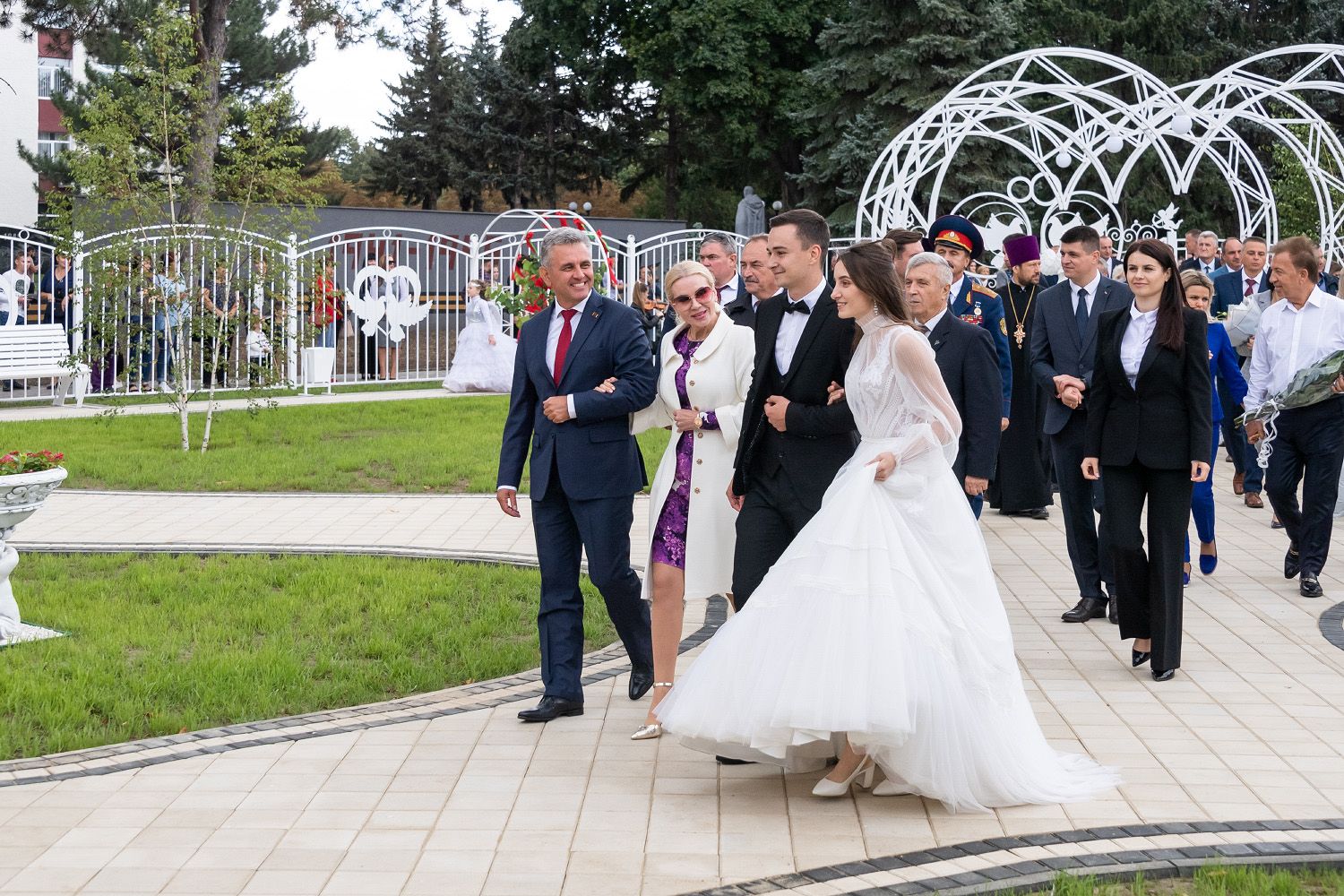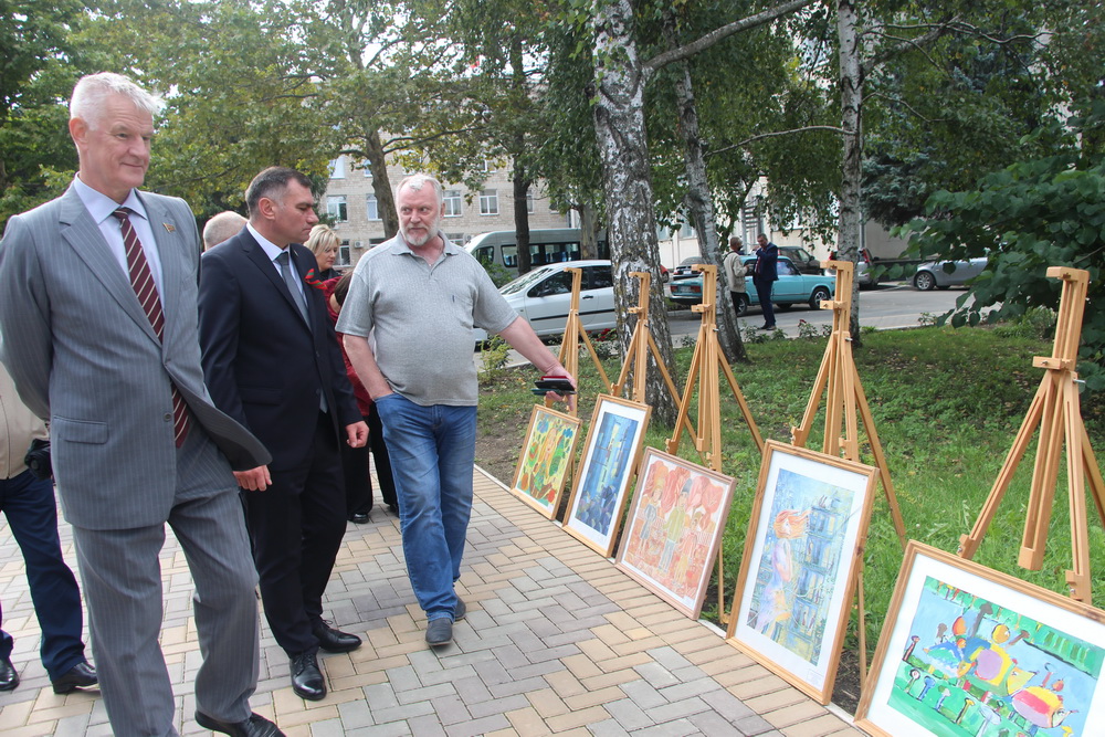 Президент Вадим Красносельский с супругой Светланой приняли участие в открытии Парка молодожёнов и пешеходного фонтана у районного Дома культуры.