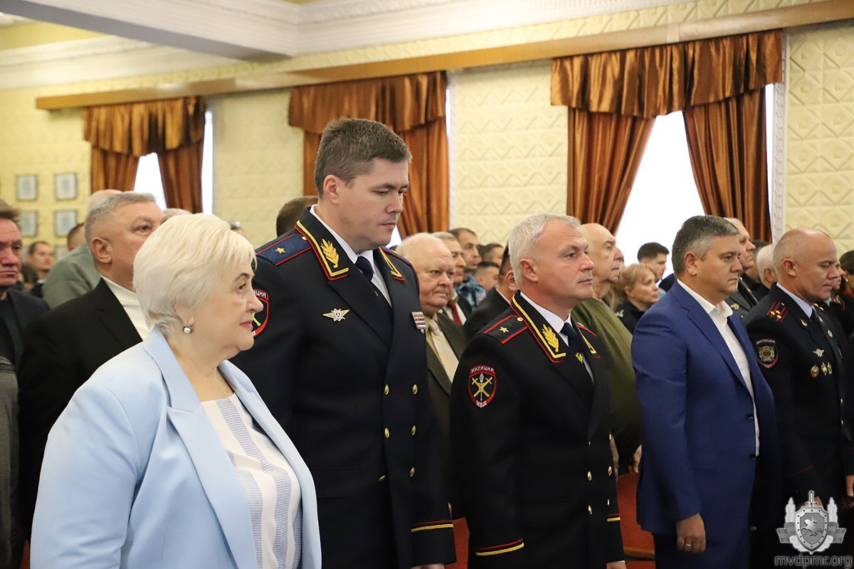Собрание продолжилось в актовом зале. Минутой молчания присутствовавшие почтили память коллег, отдавших свои жизни в борьбе с преступностью.