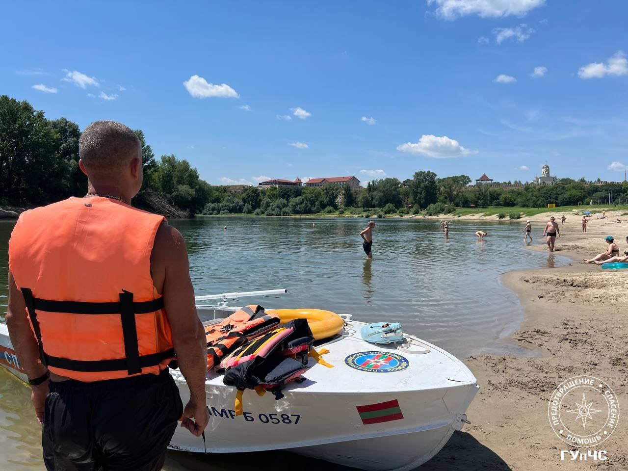 Группа спасателей на лодке незамедлительно направилась к месту происшествия, также им в помощь прибыли дежурившие спасатели на берегу.