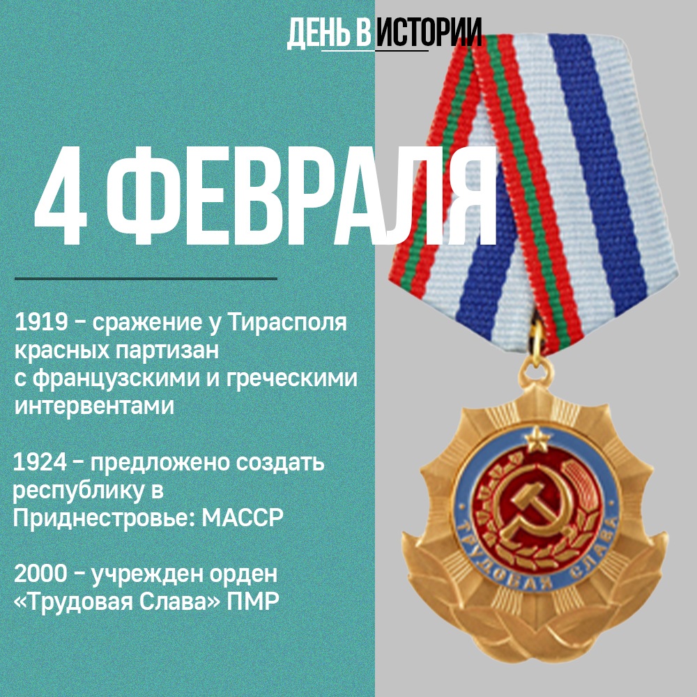 4 февраля 2000 г. – учреждён орден Приднестровской Молдавской Республики «Трудовая слава».