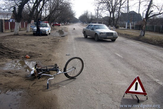 Одна из аварий произошла в минувшую пятницу, 24 февраля, в Карагаше, по ул. Ленина, в районе д. 53. 21-летний житель Рыбницкого района, управляя автомобилем «Mercedes», совершил наезд на движущегося в попутном направлении велосипедиста.