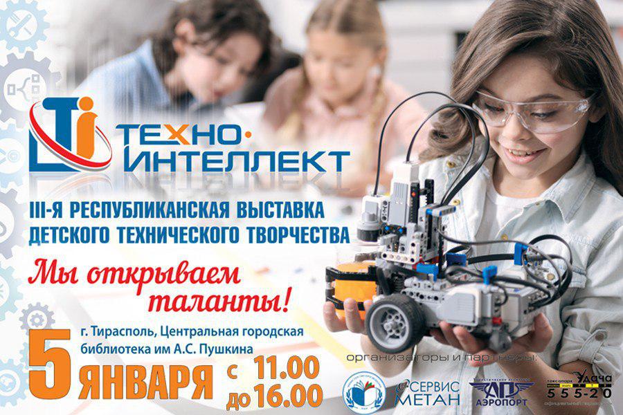 Тирасполь, 4 января. /Новости Приднестровья/. 5 января с 11:00 до 16:00 в Центральной городской библиотеке им. А.С. Пушкина в Тирасполе будет проходить III республиканская выставка детского технического творчества «Техно-интеллект». Главным организатором выступает Министерство просвещения ПМР, техническую поддержку оказывают ООО «Сервис-Метан», туристическое агентство «Аэропорт» и таксопарк «Удача».