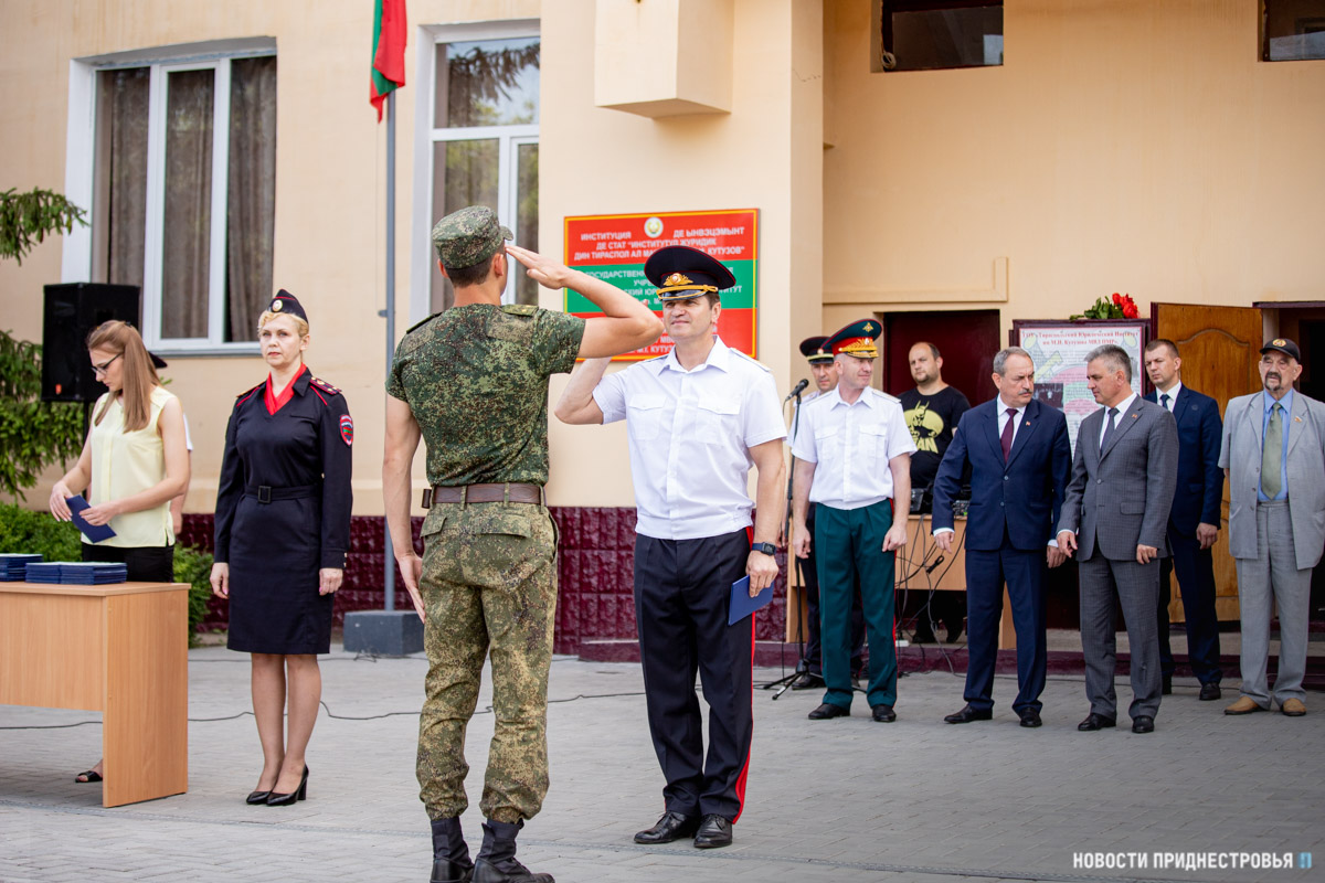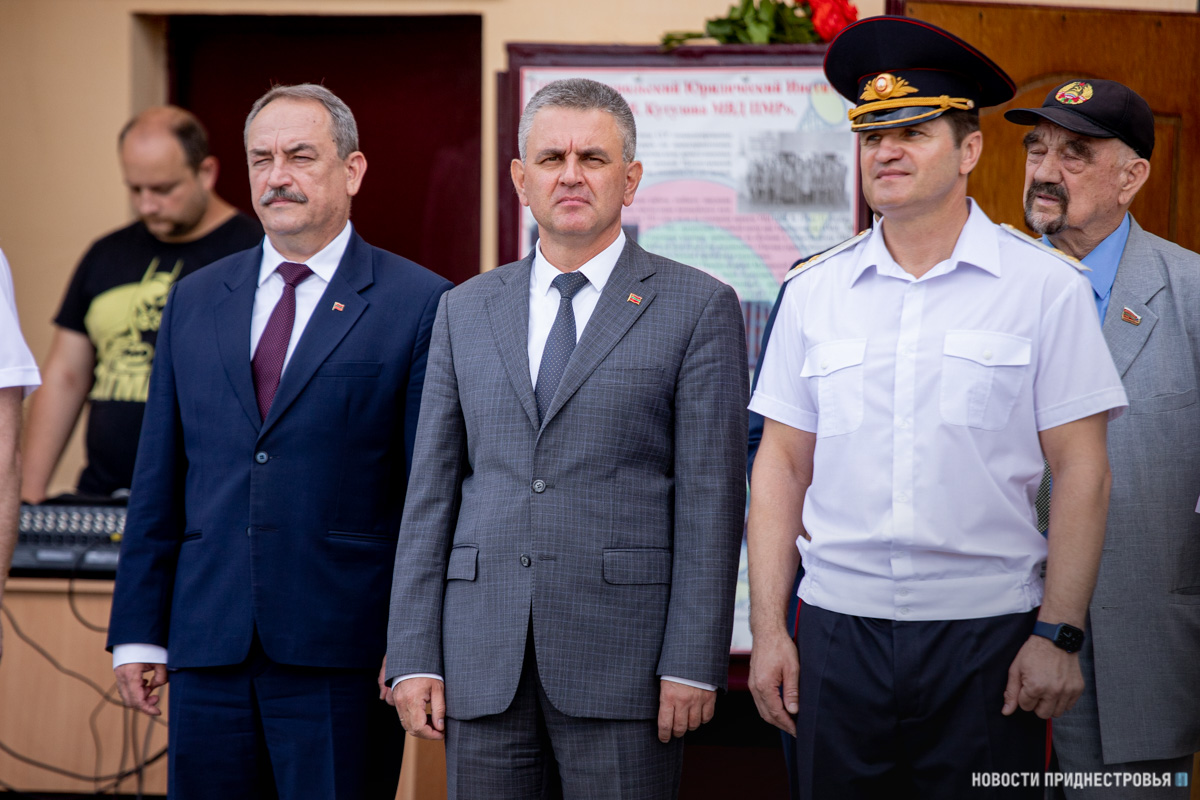 Тирасполь, 25 июня. /Новости Приднестровья/. Выпускникам Тираспольского юридического института МВД ПМР им. М. И. Кутузова торжественно вручили дипломы об окончании учебного заведения. В мероприятии участие приняли Президент ПМР Вадим Красносельский, председатель Верховного Совета Александр Коршунов и первый Президент ПМР Игорь Смирнов.