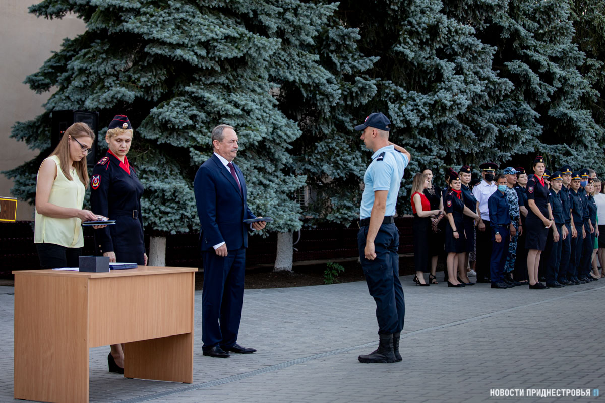 Среди поощряемых выпускников Владимир Баховцев. Институт он закончил с красным дипломом. Молодой человек рассказал, что выбирать профессию и учебное заведение долго не пришлось. Его отец и брат работали в правоохранительных органах, Владимир пошёл по их стопам. Он планирует работать в отделе дознания тираспольского УВД, где будет расследовать уголовные дела.